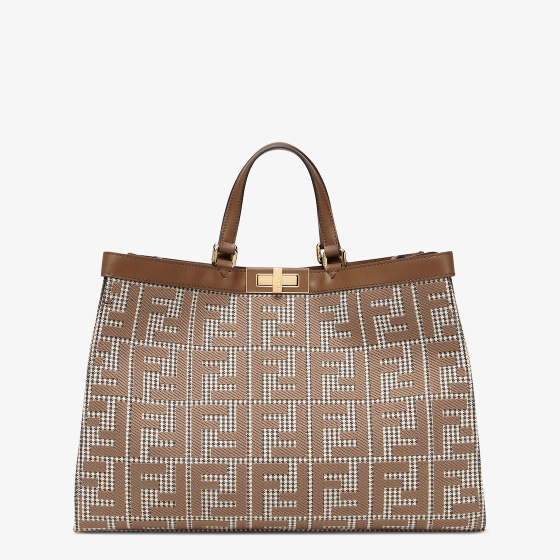 X Tote Brown Houndstooth Wool Shopper With Ff Embroidery Fendi